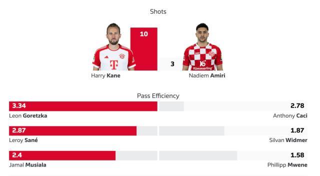@黄思隽:拜仁8比1美因茨,赛后第一时间算出来的预期进球值是6.6(此后一两天内会有修订,有时浮动还是挺大的,往往都会往下调),拜仁射门25次,射正12次。